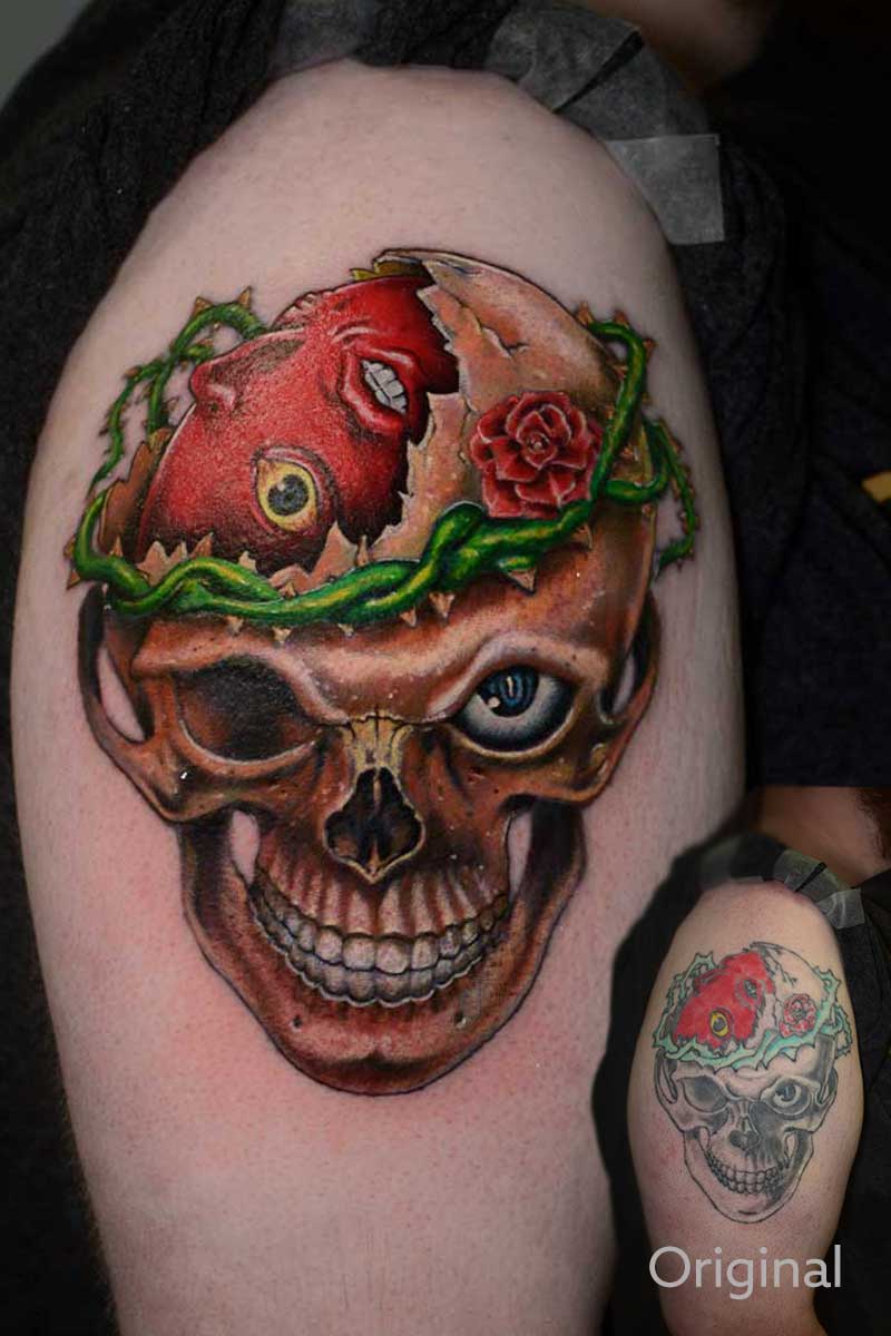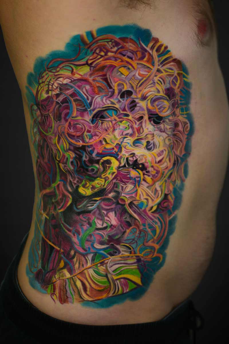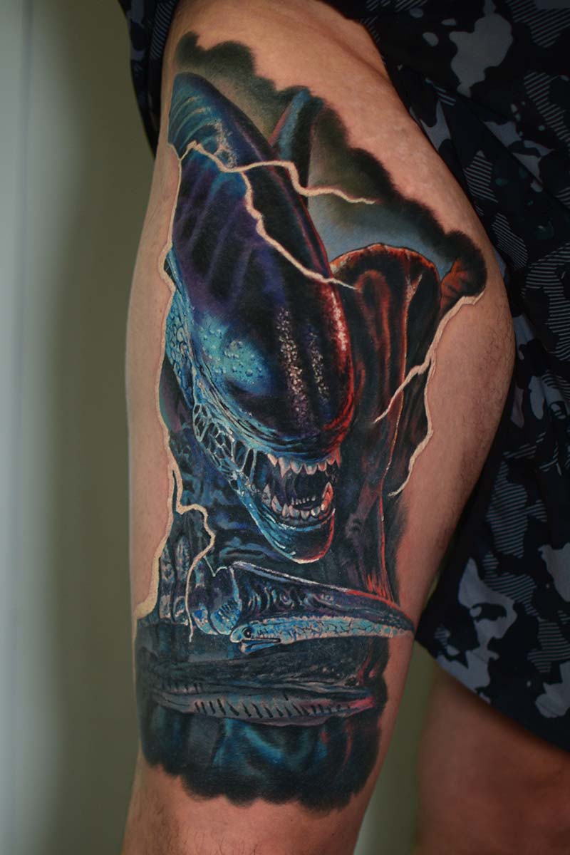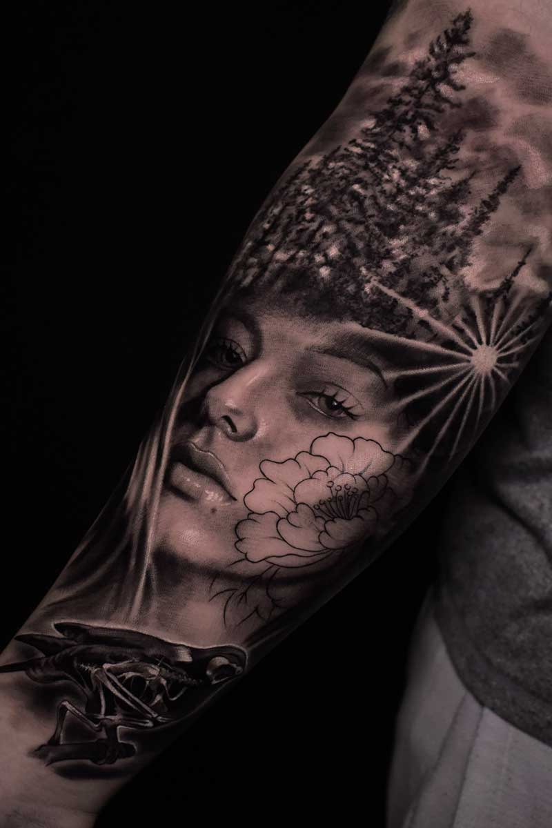 My name is Alex and I am from Ukraine. After graduating from university with a degree in “technology of aircraft engine construction”, I realized this is not what I want to do. All my life I have loved drawing and painting. That’s why in 2016 I completely went into tattooing and now it’s my passion. My favourite styles are colour realism and black and grey. I also feel good in watercolour, traditional tatting and cartoons. In my free time I create paintings and enjoy boxing.